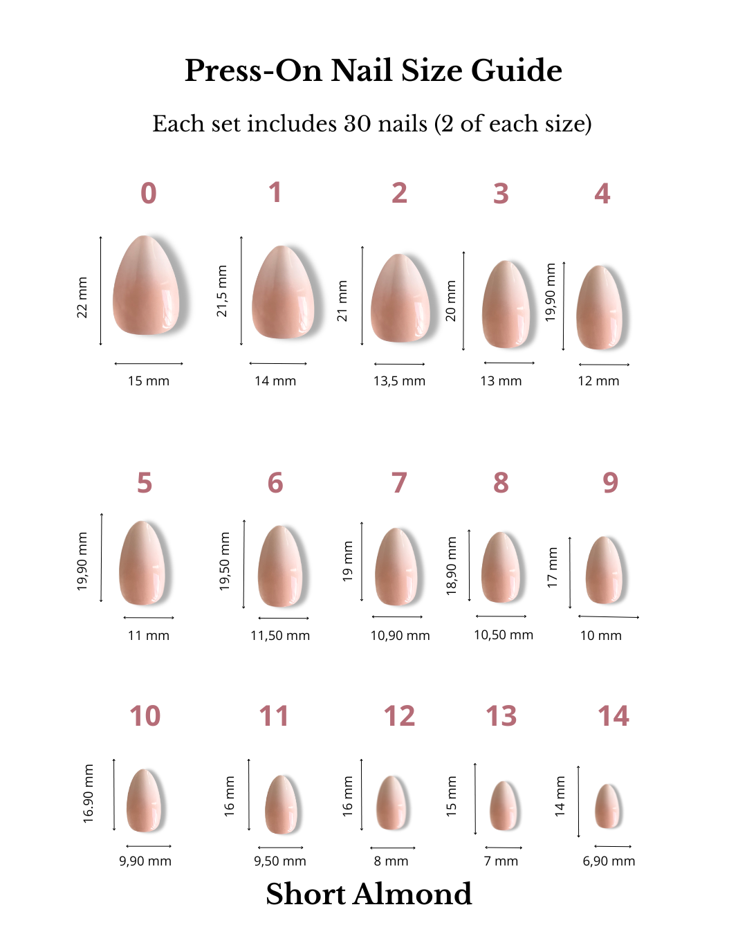 Naglarna är enkla att sätta på, sitter bekvämt och håller upp till 2 veckor vid korrekt påsättning. De kan återanvändas, är skonsamma mot dina naturliga naglar och ger dig en salongslook på bara några minuter hemma.