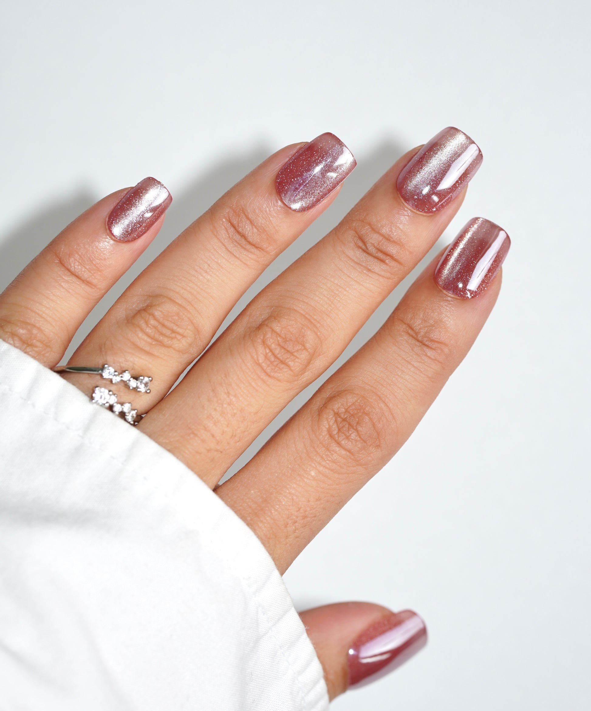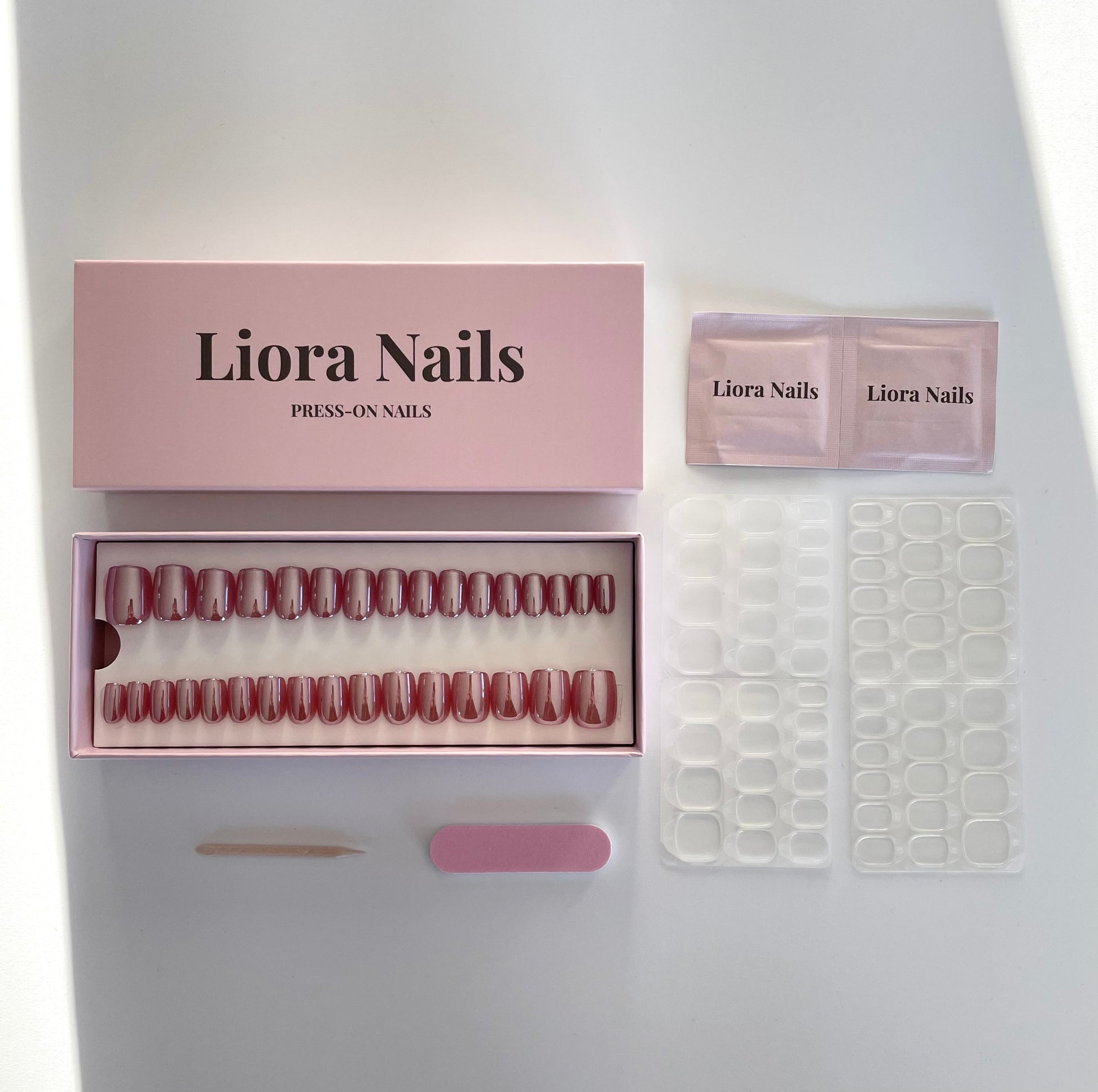 Naglarna är enkla att applicera, bekväma att bära och håller upp till 2 veckor. De är återanvändbara, skonsamma mot dina naturliga naglar och ger dig en salongsfinish på bara några minuter direkt hemma.