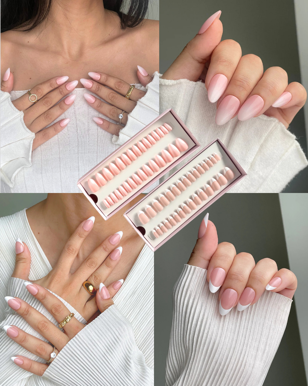 Ge dina händer en elegant och feminin look med vårt French Short Almond Duo. Här får du två vackra franska stilar i en mjuk short almond form, en klassisk fransk tipp och en modern fransk design som ger en stilren och lyxig känsla. Perfekt när du vill kunna variera mellan en tidlös fransk manikyr och en mer modern, sofistikerad stil.