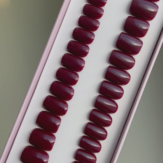 Med Wine Red Square press-on nails får du en nageldesign som kombinerar kraft, stil och elegans, redo för både vardag och fest.